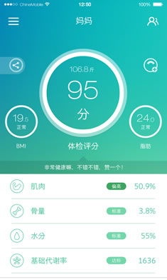身体评分是指根据称重所检测数据,结合YUNMAI云端百万人群数据样本,综合评估所得出的 0 - 100 的评分系统,来通过打分直观展示给用户身体当前身体状况。
